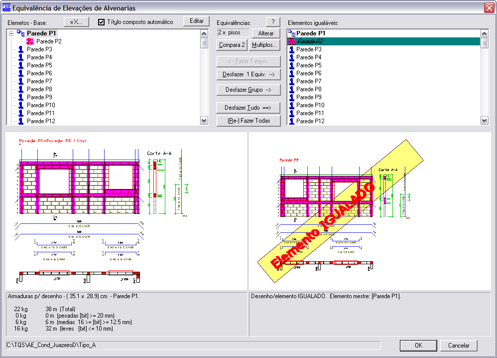 • Equivalência (simples) de Desenhos de Elevações: Novo comando para facilitar o processo de igualar os desenhos representativos das paredes do projeto. |