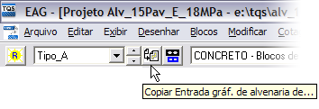 • Comando “Copiar Planta (entrada gráfica) de Alvenaria”: Para facilitar a tarefa de modelagem de uma planta, através deste comando, pode-se copiar facilmente uma outra planta já definida, para a atual, e então apenas alterar as suas particularidades. Este comando encontra-se também barra de ferramentas principal do Editor de Entrada gráfica de Alvenarias: