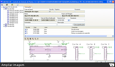 Para enviar as plantas ao seu cliente, o engenheiro cadastra-as no banco de dados de emissão de plantas. Este fará um backup de todas as plantas e desenhos, e automaticamente incrementará o número da revisão das plantas emitidas. Qualquer nova planta enviada terá seu número de revisão incrementado. Simplificando o controle de arquivos, apenas os arquivos plotados, que são efetivamente enviados aos clientes, recebem o número de revisão. O próprio banco de dados se encarrega de emitir um protocolo de entrega. A qualquer momento, poderemos determinar as plantas enviadas, quando e por quem e também restaurar qualquer planta enviada da revisão escolhida e seus desenhos. |