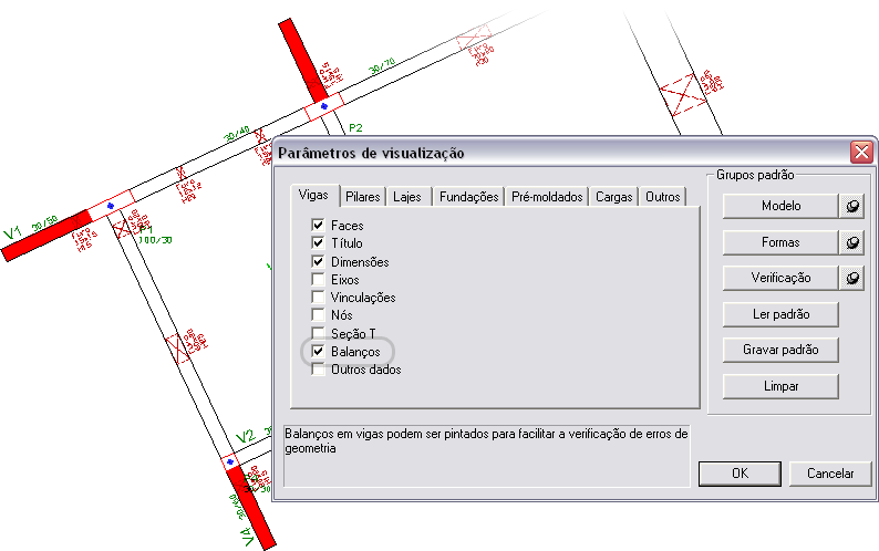 • Visualização de vigas em balanço com cor diferenciada para facilitar a verificação de erros de geometria.