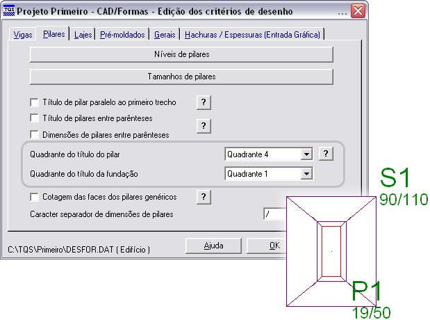 • Novo critério que define quadrante-padrão para posicionar títulos dos elementos de fundação, de tal forma a evitar interferência com os títulos dos pilares.