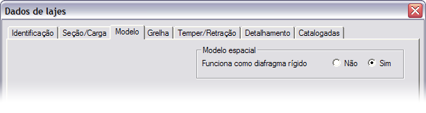 • Possibilidade de configurar se uma laje funciona ou não como um diafragma rígido. Essa atribuição é considerada no modelo de pórtico espacial.