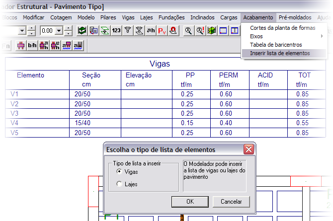 • Novo comando que inclui uma lista de elementos (vigas ou lajes) com suas seções, cargas e rebaixos.