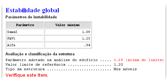 • No item “Estabilidade Global”, passaram a ser impressos os coeficientes γz e FAVt.