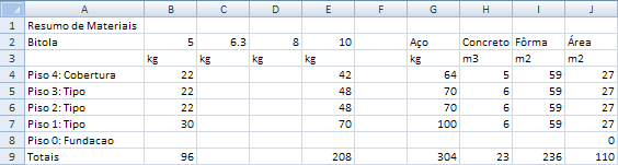 • Incluídos arquivos em formato texto (TXT) com as tabelas de quantitativos de fôrmas, concreto e aço. Isso permite a edição das mesmas numa planilha Excel®.
