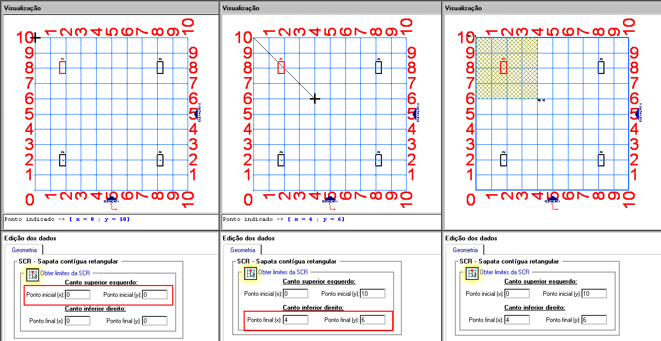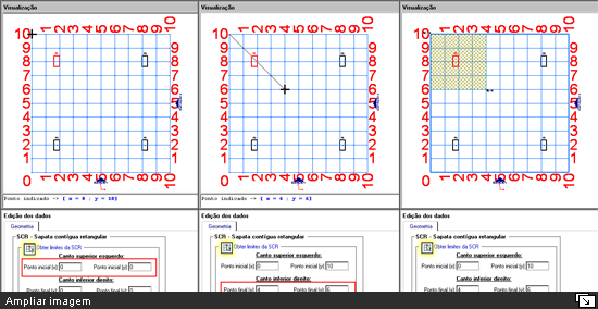 • Nos editores de sapatas associadas do SISEs (Sistema de Interação Solo-Estrutura), foi acrescentada a possibilidade de se definir graficamente as regiões SCR’s e RCR’s desses elementos, o que possibilita um grande ganho em termos de produtividade durante o lançamento e definição dessas regiões.