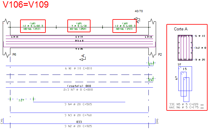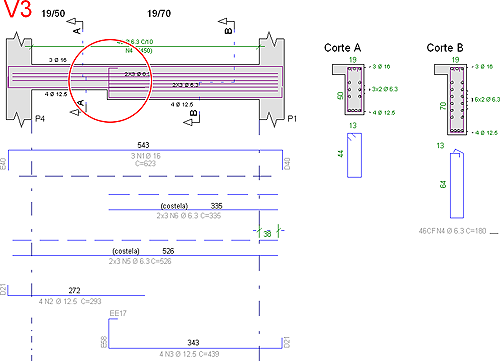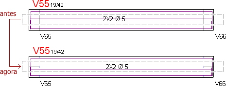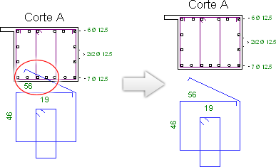 Variação de seção em vigaO detalhamento das armações longitudinais em variação de seção nas vigas passou a ser automaticamente acertado.