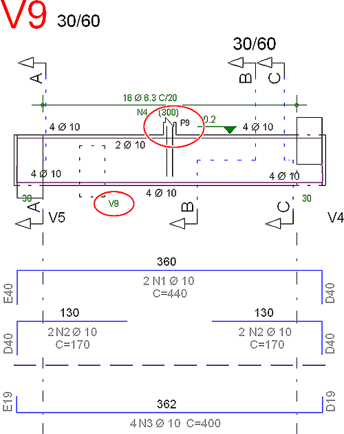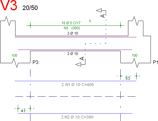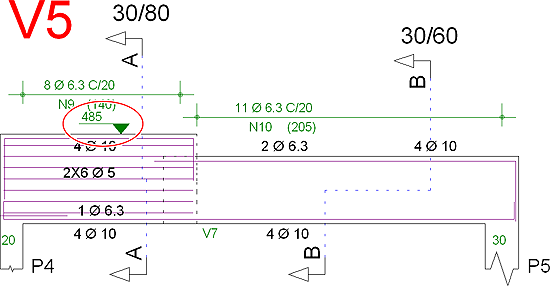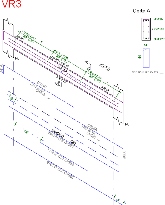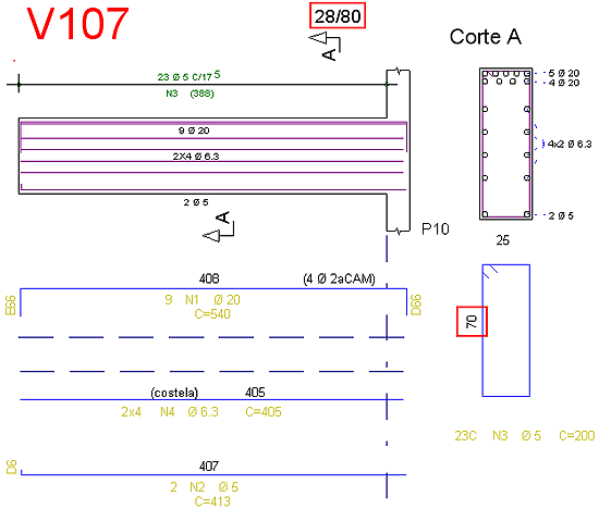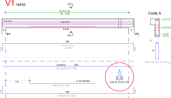 Interferência de desenhosToda a geração do desenho de vigas foi revisada com o intuito de minimizar o número de interferências de elementos gráficos. Veja um exemplo a seguir.